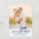 Este elegante salvamento da data apresenta um roteiro de sombreamento com um backer listrado e muito espaço para informações adicionais sobre o casamento, como o seu site de casamento ou detalhes sobre acomodações. Carregue sua própria foto e personalize as informações para incluir os detalhes do seu casamento.
