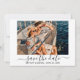 Modern Trendy Calliographic Foto Do Casal Do Script Salve O Cartão De Anúncio Do Noivado De Data