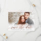 Este elegante salvamento da data apresenta um script de sombreamento em folha de ouro falso rosa com um backer listrado. Carregue sua própria foto e personalize as informações para incluir os detalhes do seu casamento.