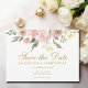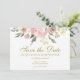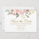 Um elegante buquê floral de peônias cor-de-rosa e flores de marfim de aquarela moldou este lindo casamento floral de primavera Salve o cartão de Data com guião dourado. As manchas de sábio saem decoradas em meio ao conjunto de cor de pêssego de flores que cercam a bela tipografia. Adicione a sua foto de noivado favorita no verso.