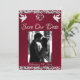 Esse design romântico apresenta um elegante fundo burgundy com bordas reluzentes, espaço reservado para fotos de casal, delicado coração prateado e pombos com data para o evento em roteiro elegante na frente. O verso tem um marcador de posição monograma, mais informações e lugar para o seu site no verso. Também disponível com diferentes planos coloridos para as cores do tema do casamento. (O brilho é simulado no trabalho de arte). Concebido para coordenar a Coleção de Casamentos "Dois Tornar-se-ão Um - Corações, Doves & Glitter". Para alterar os detalhes, clique em "Personalizar". Substitua a foto pela sua. Para mover o texto ou alterar o tamanho, a fonte ou a cor do texto, clique em "Clique para personalizar mais"