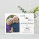 Este cartão de Salve o Dia do Aniversário de Casamento tem uma caligrafia elegante completada por uma foto maravilhosa do casal celebrado. Você pode personalizá-lo com os detalhes do seu Aniversário de Casamento.