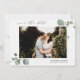 Mande cartões salve a data em estilo com nosso elegante design, com uma ilustração aquática das ramificações de eucalipto, junto com o cabeçalho da tipografia de caligrafia. Personalize com sua imagem de noivado favorita, duas linhas de texto na frente e no verso também.