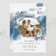 Foto maravilhosa, cor d'água azul e floral azul e folhagem Casamento Salve o Cartão de Data. Na frente, uma fama geométrica atrativa envolta por flores e folhagem, com a imagem dentro e mancha azul de aquarela em cascata no verso. Uso de detalhes modernos de caligrafia escrita à mão. Nas costas, mancha de água azul delicada e em cascata. Também disponível com a colagem de fotos no verso. Parte de nossa "Coleção Rustic Blue Mounains" com uma variedade de produtos de coordenação disponíveis.