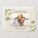 Elegante Salvar O design de quadro de foto de data apresenta a imagem do seu noivado moldada por um quadro de cor de ouro cintilante. Rosas românticas de casamento botânico branco-chico, mostradas em lenafy greenery, adicionam uma tendência e toque sofisticado em um fundo de cor de casca de ovo. Personalize com sua foto favorita. (Para melhor posicionamento da sua imagem, use uma ferramenta de edição de fotos para centralizar e recortar ANTES de carregar no site do Zazzle.) Compartilhe seus detalhes de noivado e casamento com seus convidados em letras e roteiro elegantes de cinzas de carvão. A parte traseira da placa é uma cor de casca de ovo simples correspondente. Pode entrar em contato comigo em invitationsuites@gmail.com se tiver perguntas sobre este ou qualquer dos nossos designs.