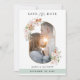Anuncie a data do seu casamento com este elegante casamento fotográfico, salve a data! Design com uma bela camada de fotos ovais com detalhes florais refinados e detalhes modernos de caligrafia escrita à mão. Detalhes flóricos em uma bela mistura de bege, rosa poeirento, blush, terracota, ferrugem, laranja, verde e uma sugestão de tons azuis. Estique na parte inferior em tom verde sábio para realçar sua data. Capacidade de alterar a cor da faixa para branco ou outro selecionando "personalizar mais". Volte com seus nomes e salve os detalhes da data sobre uma cor verde de fundo sage e detalhes florais atraentes na parte inferior. Também disponível em branco. Parte de nossa coleção "Sage Green and Terracotta" com uma variedade de produtos de coordenação disponíveis, incluindo o conjunto completo de convites.