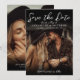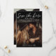 Cartão de Save the Date de Casamento Simples Escuro. Este design adota uma vibe sofisticada e sombria com fotos em página inteira na frente e no verso. Um gradiente preto sobrepõe a parte superior e inferior da foto da frente, com texto branco em uma mistura de fontes elegantes de caligrafia e serifadas clássicas para um visual marcante e refinado. "Save the Date" é exibido no topo, seguido pelos nomes do casal, data do casamento, cidade e estado. "Convite formal a seguir" aparece sutilmente na parte inferior.