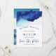 Reserve A Data Foto em Azul Índigo Aquarela com Roteiro Moderno