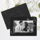 Esse anúncio simples de preto-e-branco sobre gravação de fotos da data captura a essência da simplicidade e sofisticação. Apresentando sua foto cercada por um quadro preto, serif e fonte cursiva na frente, e um padrão de diamante geométrico preto e branco pontilhado no lado oposto.