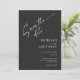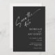 Esses cartões salve a data de 5" x 7" apresentam um design minimalista em letras brancas em um fundo preto com espaços reservados para os nomes de casais envolvidos, data de casamento e informações de local. O verso tem um lugar para inserir sua foto favorita com os nomes dos casais e a data do casamento.