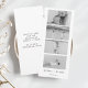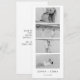 Este convite de casamento branco elegante "save the date" apresenta um design sofisticado que incorpora uma impressionante faixa de fotos em preto e branco, permitindo que os casais mostrem três imagens queridas. Combinando perfeitamente estilo e sentimento, este convite serve como um belo anúncio de "save-the-date", convidando os convidados a compartilhar a alegria da próxima celebração. Sua estética atemporal garante que seja uma lembrança memorável para todos que o receberem.