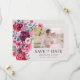 Deixe sua história de amor ocupar o centro do palco com este cartão moderno, elegante e horizontal, com sua foto de noivado favorita, enquadrada por um rico fundo azul de marinho. O verso mostra um monograma personalizado de casamento ao lado do seu website de casamento, garantindo que os convidados tenham todos os detalhes de que precisam. Os tons profundos de joias dos elementos florais coordenadores — rosas, anêmonas, cosmos, margaridas e delfinium em vermelhos cor-de-rosa, profundos, burgundy, blues e roxo — adicionam um toque romântico, enquanto o eserald greenery e o eucalipto proporcionam uma sensação nova e orgânica. Personalize o texto e os estilos de fonte para refletir sua história de amor única e criar uma mancha de eterno que os convidados apreciarão. Faça uma primeira impressão inesquecível com uma design tão espantosa quanto a sua próxima celebração. NOTA: o texto é marinho azul sobre fundo marfim.