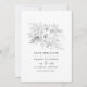 Salvamento de data de foto de casamento branco com flores brancas e verso de damasco marfim e branco personalizável para os detalhes do seu evento. Ideal para qualquer tema ou casamento no jardim.