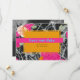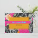 Forma de retângulo cor de laranja claro sobre laranja cor-de-rosa e cor de pêssego floral moderno com design marmorizado escuro. Azul Salve o texto da data sobre o bar rosa quente com texto preto para obter detalhes. Personalize com sua foto no verso.