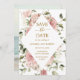 Rosas rosa empoeirado muito bonitas criam uma moldura para cercar os detalhes da data de salvar. O texto em dourado adiciona ao visual glamoroso.