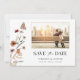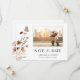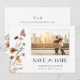 Foto Floral Salve a Data. Este salve a data de casamento elegante e sofisticado apresenta uma linda borboleta pintada à mão com aquarela e flores silvestres dispostas como um lindo buquê lateral. O verso inclui um monograma e texto para adicionar o site do seu casamento, ou facilmente removê-lo se preferir. Encontre itens correspondentes na Coleção de Casamento de Flores Silvestres Boho Branca.