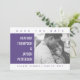 Foto geométrica em negrito Salve o Anúncio de data com um design geométrico minimalista e moderno em roxo ultravioleta e branco. Adicione uma foto e seus detalhes de casamento para personalizar. A cor de fundo no verso do convite pode ser alterada para complementar a foto ou para adicionar a cor do seu casamento.