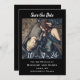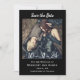 Escuro bonito salve o cartão de data com fundo preto, e a tipografia angustiada da escrita. Personalize com sua própria foto especial. Veja a coordenação de itens no nosso compro, Encantado Finch.