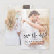 Transparência que cobre foto personalizada e customizada na frente e no verso de convites de casamento elegantes e modernos para Salvar a Data - inclui tipografia de roteiro bonita e elegante para a celebração especial do dia do casamento.