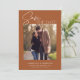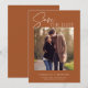 Esta elegante laranja queimada salva a data do anúncio fotográfico apresenta uma fonte moderna e um simples design minimalista. Esta única forma de guardar o cartão de data é uma maneira moderna de anunciar o seu casamento. A FOTO DA AMOSTRA NÃO ESTÁ INCLUÍDA. SUBSTITUA POR SUA PRÓPRIA FOTO ANTES DE ENCOMENDAR.