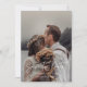 Este simples e elegante cartão de data, projetado com belas letras de guião branco escritas à mão, é perfeito para ajustado da sua foto de noivado orientada a retratos favoritos. Você pode personalizar a frente com seus nomes e data de casamento, assim como as costas com detalhes adicionais.