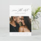 Uma fotografia simples e romântica salve o cartão de data com bela caligrafia de script, fotografia horizontal e texto mínimo na frente. O verso tem uma foto vertical com o site do casamento. Clique no botão editar para personalizar este design.