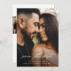 Uma simples e romântica foto de casamento vertical salva a data com belíssima cobertura de caligrafia na frente. As costas têm duas colagens de fotos com o site de casamento. Clique no botão editar para personalizar este design.
