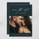 Uma fotografia simples e romântica salve o cartão de data com bela caligrafia de script, fotografia horizontal e texto mínimo na frente. O verso tem uma foto vertical com o site do casamento. Clique no botão editar para personalizar este design.