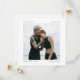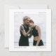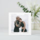 Este casamento simples e moderno Salve a data com a sua foto em um quadro quadrado sobre fundo branco e texto colocado simetricamente no topo e no fundo. Use sua própria foto e altere o texto e a cor do texto na frente e na parte traseira desta opção Salvar o cartão de data.
