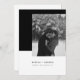 Esta foto moderna minimalista salva a data design apresenta uma forma preta de fundo e uma foto justificada para o lado direito. É um estilo simples que facilita a personalização do texto e da fotografia.