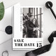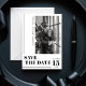 Anuncie seu grande dia com este impressionante minimalista moderno salve o cartão de data. Apresentando uma tipografia ousada em um design branco e preto limpo, essa placa combina perfeitamente elegância com um toque contemporâneo. O layout vertical do nome e os sotaques elegantes enquadram sua foto de noivado lindamente, criando uma pré-visualização na moda da sua estética de casamento. Ideal para casais que procuram fazer uma declaração ousada mas eterno, este cartão define o tom para uma celebração sofisticada. Totalmente personalizável para incluir seus detalhes e fotos, garantindo que seja tão exclusivo quanto sua história de amor.