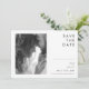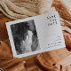 Esta foto horizontal minimalista moderna, negra e branca, para salvar a data é perfeita para o seu casamento clássico de vô. Seu design simples, único e abstrato, acompanhado de um roteiro mínimo contemporâneo e de uma paleta de cores brancas e pretas dá a este produto uma sensação de luxo formal elegante enquanto permanece simplista, boêmica. Mantenha-o como está ou escolha personalizá-lo com trabalho de arte ou gráficos de sua escolha. Você também pode procurar outros produtos dentro desta coleção para juntar todo o seu casamento!