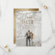 Casamento de Foto Moderno e Dourado Russo Salve os Cartões de Data Personalize com sua Foto e texto para torná-la Exclusivamente O seu vem com o padrão de folha de ouro no verso, você pode remover o padrão no verso ou solicitar um padrão personalizado de graça, contatando-nos