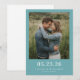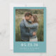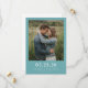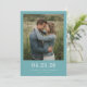 Este convite de casamento apresenta uma fotografia central de dois indivíduos se abraçando em um campo, cercados por gramíneas altas. O design é emoldurado por uma borda sólida azul-esverdeada que adiciona um contraste vibrante aos tons naturais dentro da foto, criando um visual moderno e elegante. O layout é simples e minimalista, com uma tipografia sem serifa limpa centralizada abaixo da imagem para fácil personalização. O clima geral é caloroso e íntimo, perfeito para casais que desejam compartilhar seu momento especial de forma serena e pessoal.