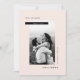Um quadro elegante do rosa-casca mais pálido parece moderno e mínimo em torno de sua foto do noivado retrato ao lado de um texto personalizado simples. Personalize este cartão com mais informações usando as caixas de texto personalizadas no verso.