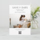 Este casamento moderno salva os cartões de data e apresenta uma elegante tipografia minimalista em preto sobre fundo branco ao lado de sua própria foto personalizada.