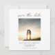 Estilo contemporâneo com script Na moda para Salvar a Data acima da sua foto e o resto do texto que você pode personalizar facilmente. Basta substituir a foto de exemplo no espaço reservado para modelo por sua favorita. Você também pode alterar o fundo branco na parte frontal e marrom na parte traseira, por meio da opção Personalizar mais, se desejar.