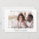 Moderno salve o anúncio de data com sua foto de noivado e "Estamos Começando a Nossa Felicidade Sempre Depois" em uma mistura de tipografia mínima e um roteiro de na moda com baloiços. Personalize com seus primeiros nomes, data do casamento e local em tipografia elegante. Ao contrário, personalize os detalhes da data e adicione seus nomes em um script semelhante a assinatura.