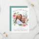 Sua foto favorita do casal é cercada por uma elegante e fina estrutura de ouro decorada com peônias rosas românticas. Salvar a data é escrito em um texto curvo de todos os bonés acima da foto do casal. Para o casamento de, seus nomes, a data e o local estão abaixo em uma combinação de textos serif e itálico. É muito fácil substituir os detalhes Salvar a data Você também pode alterar a cor, a fonte e o tamanho do texto. A parte de trás da Data da Salvação é azul. Isto também pode ser alterado.