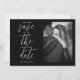 Capture a essência da elegância moderna com nossa Foto Moderna Negra e Branca Salvar a Data. Este design espetacular mostra sua foto de noivado favorita em uma paleta branca e preta elegante e minimalista. A simplicidade do design permite que seu amor e alegria se tornem palcos centrais, enquanto a impressão de alta qualidade garante a clareza e a nitidez da foto. Com opções personalizáveis para seus nomes e data de casamento, este cartão de data salva adiciona um toque pessoal aos seus anúncios de casamento. Quer você esteja planejando um caso contemporâneo ou uma celebração clássica, nossa Foto Moderna Negra e Branca Salvar a Data define o tom para seu dia especial com estilo e sofisticação. Compartilhe sua história de amor com entes queridos e crie a antecipação para o grande dia com esse amor moderno e eterno.