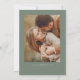Green Simple Calliographic Modern Four Photo Save the Date apresenta um trio de fotos na frente, junto com o moderno e mínimo tipo. Uma grande foto solteiro no fundo, com o seu site de casamento.