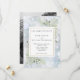 Apresentando delicadas folhas de aquarela num fundo planície maravilhoso com queda de flocos de neve. Esta simples e elegante alteração do cartão de data pode ser personalizada com seus detalhes de casamento atualizados definidos na tipografia moderna. Você pode adicionar sua foto escolhida no sentido inverso. Projetado por Thisnotme©