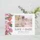 Foto oral Tropical Colorida Salva a Data. Capturar corações desde o início com esta Foto Salve o Cartão de Data, maravilhosamente moldada por folhas tropicais aquáticas e florais vibrantes em tons de magenta, fúcsia, rosa-pincel e verdes-peludos. O verso apresenta um padrão tropical coordenado, adicionando um toque vibrante e coeso que aponta para a próxima celebração. Personalize sua foto favorita, personalize o texto, ajuste os estilos e tamanhos de fonte e até modifique o plano de fundo para refletir o seu estilo pessoal. Anuncie seu dia especial com uma explosão de cor e alegria — deixe seus convidados começarem a sonhar com seu paraíso tropical.