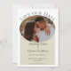 Esta Foto Simples de Oval Salve o Anúncio de data apresenta um design de texto moderno, um padrão de arco e um posicionamento de fotos ovais. Personalize com sua foto e detalhes do casamento para um anúncio contemporâneo e minimalista.