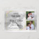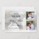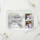 Foto: Salvar a data. Esta opção Salvar a data é uma modelo para que a noiva e o noivo personalizem. As fotos coloridas foram cortadas em quadrados. A foto da base em preto e branco foi recortada para uma foto 4x6. Tem uma estrutura de ouro com flores cor-de-rosa.