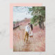 Simples e moderno Salve a design de cartão com fotos de de Data para você adicionar sua própria linda foto, deixando seus amigos e família saberem quando e onde o casamento acontecerá. A camada branca com script ligeiramente translúcida pode ser movida em qualquer lugar e você pode colocar as linhas de texto onde quiser e até adicionar outra se desejar. O reverso da placa tem o mesmo script, com uma linha de texto no meio, informando mais detalhes. Você pode mudar a cor do fundo para corresponder à sua foto.