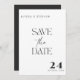 Cartão simples e moderno Save the Date com foto em preto e branco. Save the Date com foto de casal elegante com fonte decorativa e data em negrito. O contraste preto no verso atualiza o design moderno do Save the Date. Também disponível em download digital instantâneo para sua conveniência. Você pode encontrar mais opções de cartões Save the Date semelhantes a este na coleção Modern Minimalist Black and White Save the Date na loja The Gathering Designs.