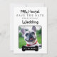Por favor, os meus humanos vão casar-se, salvem a data para os casais que são donos de cães. Casamento divertido do dono do animal Salve o cartão de data com duas fotos - uma na frente e outra na parte de trás. Design de tipografia de pata com mensagem de cão viciado - PAWpor favor, Salve a data para o meu casamento com o Humans.