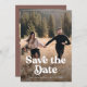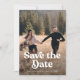 Este é um casamento boêmico salve o cartão de data usando uma fonte do estilo de vintage retrô junto com um design de foto moderno e simples. O verso inclui uma segunda foto e uma mensagem que você pode personalizar. Altere facilmente as cores, o texto e as fotos, conforme necessário. Entre em contato com o designer para obter informações relacionadas a este design.