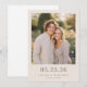 Este cartão de salva-datas de casamento apresenta uma fotografia calorosa e íntima de dois indivíduos que estão próximos um do outro em um jardim suavemente desfocado. A paleta de cores inclui tons terrosos suaves, como bege e verdes discretos, criando uma atmosfera serena e convidativa. O layout limpo e centralizado destaca a data e os nomes com tipografia moderna sem serifa, garantindo clareza e foco nos detalhes principais. O clima geral é alegre e romântico, capturando um momento autêntico de alegria e conexão, perfeito para compartilhar sua celebração iminente.